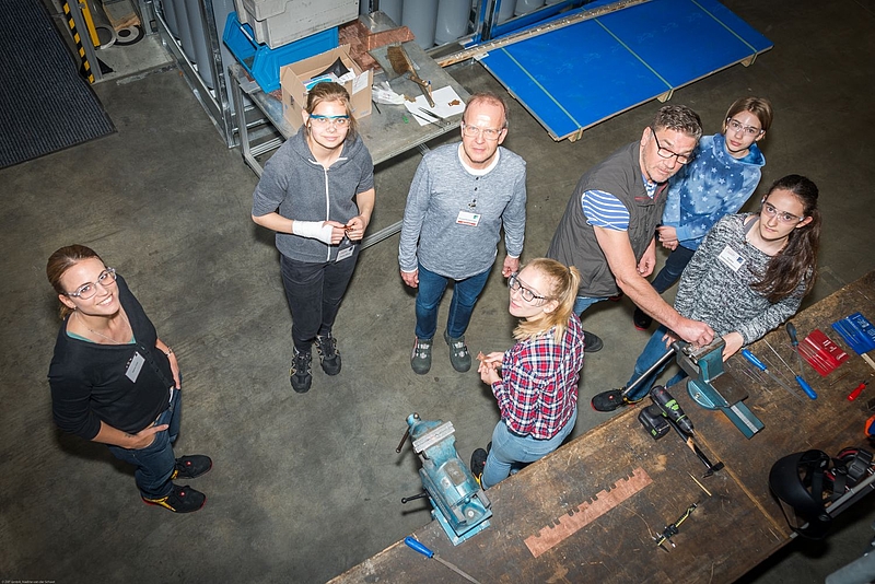 Es wurde ein Schmuckstück aus Kuper (in Form einer Eule) hergestellt. Hierfür musste gefeilt, gekörnt, gebohrt und gesandstrahlt werden. Im Zuge dessen wurden auch die verschiedenen Maschinen in der Werkstatt erläutert. Nach der Mittagspause in der Uni-Mensa wurde das Schmuckstück vernickelt und vergoldet. Sehr spannend für die Mädchen war das Löten einer elektrischen Schaltung, da die meisten dies noch nie vorher gemacht hatten. Die in der Werkstatt gefertigte Eule erhielt dann Augen in Form von 2 leuchtenden LEDs. Zum Schluss konnten die Mädchen im Nasschemielabor eine Katalysatordispersion herstellen und zuschauen, wie aus dieser mithilfe einer Sprühvorrichtung eine Schicht für die Verwendung in der Brennstoffzelle entsteht. Insgesamt hat der Girls Day allen Teilnehmerinnen und Betreuern sehr viel Spaß gemacht. Der Tag bot Einblicke in folgende Berufe: Werkzeugmechanikerin, Industriemechanikerin, Mechatronikerin, Elektronikerin, Physiklaborantin, Chemikantin und chemisch/physikalisch technische Assistentin.