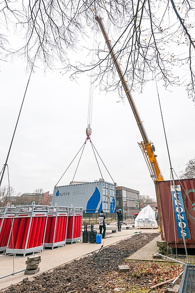 Mit Fördermitteln der EU, des Bundes und des Landes NRW entsteht im Rahmen verschiedener Projekte in Duisburg aktuell ein Testfeld für Elektrolysesysteme, Wasserstoffspeicherung, -verteilung und –abgabe sowie ein Labor zur Wasserstoffqualitätsanalytik. Hiermit schafft das Zentrum für BrennstoffzellenTechnik (ZBT) auf dem Universitätscampus wichtige Kapazitäten zur Erforschung höchst aktueller wissenschaftlicher und anwendungsorientierter Fragestellungen.